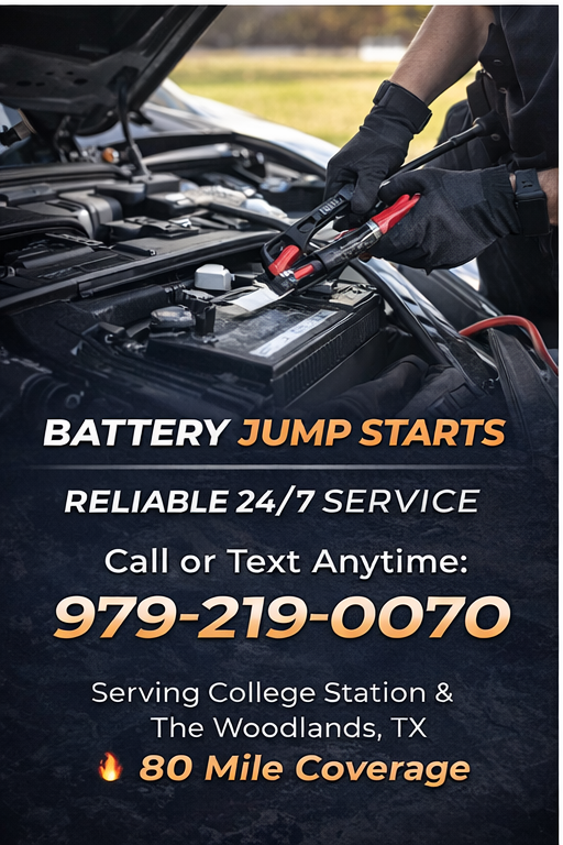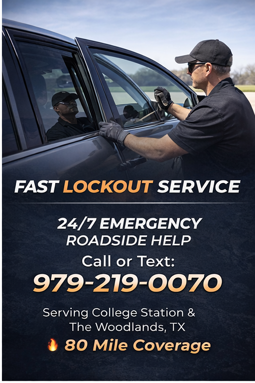 Need fast roadside assistance in College Station, TX? Call 979-219-0070 for 24/7 towing, jump starts, tire changes, and lockouts.